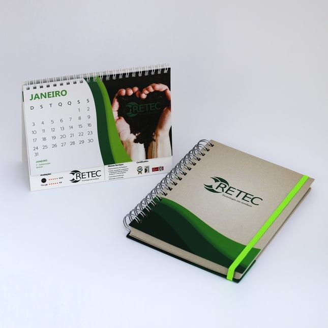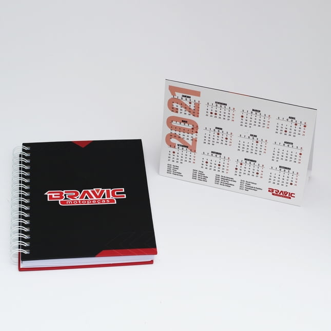Calendários personalizados, agendas, cadernos com a logomarca da empresa, organizers, planners e blocos de anotações são uma ótima pedida quando se trata de manter a marca próxima ao cliente por um longo período.